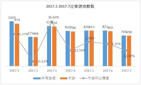 据国家广电总(zǒng)局官网公开的数据,游戏版号(hào)审(shěn)批信息(xī)已经更(gèng)新到了7月。而据欧陆平台(微信公众号(hào):wanghukeji)了解到的信息(xī),2017年7月,过审手游数量为698款,比6月份少了104款(kuǎn),环比下降12.97%。