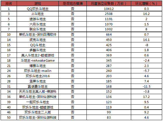 10月棋牌(pái)游戏(xì)榜单中(zhōng)的(de)斗(dòu)地主游戏
