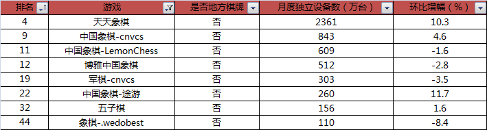 10月棋牌游戏(xì)榜单中(zhōng)的棋类游戏