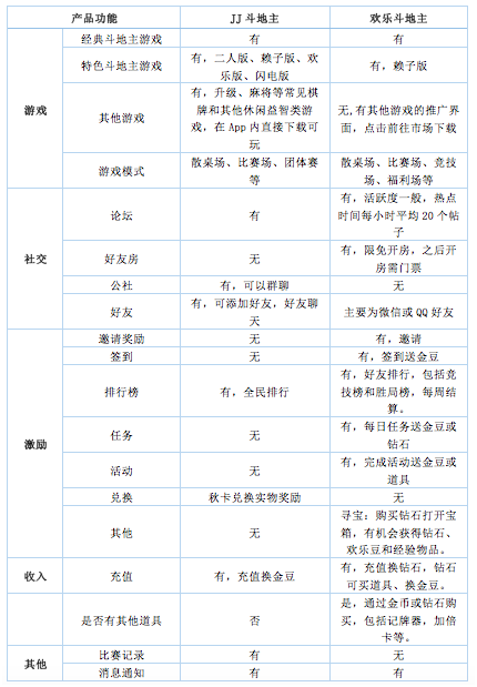 JJ斗地主和欢乐斗地主的产品(pǐn)功能对比