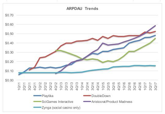 ——2017年,Top 5的公司为Playtika (27%), Scientific Games