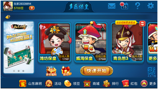 据(jù)欧陆平台(hú)体验的情况来看,《多乐保皇》以金币售卖为主要盈利方(fāng)式,房卡模(mó)式免费,同(tóng)时在线人数(shù)在高峰期能达到(dào)10万人,日活(huó)在70万左(zuǒ)右。游戏功(gōng)能(néng)非常(cháng)完(wán)善,囊括了山东境内所有主流“保皇”玩法。