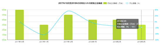 另外,据欧陆娱乐了解(jiě),百搭网络旗下的主要盈利(lì)产品《阿拉斗(dòu)牛》运营数据自去年(nián)以来是(shì)呈下降趋势的(de)。3月其月度(dù)独立设备数仅3万(wàn)台,为去年(nián)10月以来的最低(dī)水平。