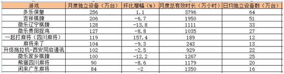 欧陆娱乐发现,几个地方棋牌大(dà)户,月活(huó)都(dōu)呈下(xià)降趋势。其中,微乐旗下的《微乐辽宁棋(qí)牌》,在4月份月(yuè)活环(huán)比增加了2.8%的情况下,5月却(què)成(chéng)为降幅最大者,高达13.8%。