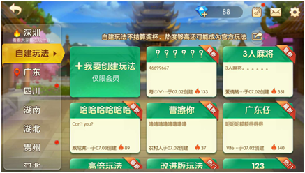 可(kě)是,对(duì)于(yú)运(yùn)营商来讲,每一款地方棋牌的玩家毕(bì)竟(jìng)有限,要覆盖到全国,在推(tuī)广上的难度(dù)和成(chéng)本也是可想而知的。而腾(téng)讯《麻(má)将来了》却反其道而行(háng)之(zhī),与其做(zuò)出每一(yī)款地方棋牌,不如让玩(wán)家(jiā)自己设定游戏怎么玩。
