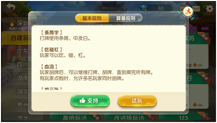 但是,对于一些小众的棋牌游(yóu)戏,未必能够全(quán)部(bù)囊(náng)括其中。自创玩法则给了(le)玩家充分的自(zì)主性,成为游戏会(huì)员以(yǐ)后,玩家即可自(zì)创玩(wán)法,其他(tā)游(yóu)戏(xì)玩家也(yě)可(kě)试玩或表示支持(chí),如果该款玩法(fǎ)热度达到要求(qiú),还有(yǒu)可能被收(shōu)录(lù),成为官方玩法。这样也可以调动(dòng)玩家的积极性主动推广游戏(xì),降低获(huò)取用户的(de)成本。