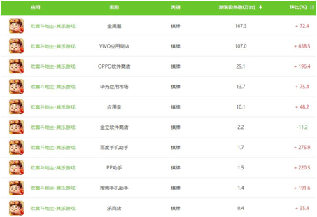欧陆娱乐最近在浏览艾瑞数(shù)据时(shí)发现,在5月新增设备排行前五(wǔ)名中(zhōng),《欢喜斗地主(zhǔ)-其乐(lè)游戏》作(zuò)为(wéi)唯一一款呈(chéng)增幅趋(qū)势的通用棋牌(pái)位列其中。数据显(xiǎn)示(shì),该(gāi)款游戏5月新增设备数为167.3万(wàn)台(tái),环比(bǐ)增幅为72.4%。