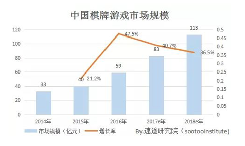 在这样(yàng)的背(bèi)景下(xià),棋(qí)牌游戏(xì)行业的市(shì)场(chǎng)规(guī)模也在迅(xùn)速扩大,2016年行业市(shì)场(chǎng)规模仅为(wéi)59亿(yì)元,而2018年(nián)的市场规模,预计已经高达113亿元。年(nián)平均增长(zhǎng)率达36.5%。据不完全(quán)统计,每年都有数(shù)千家新的棋(qí)牌运营(yíng)商,步入这个市场。