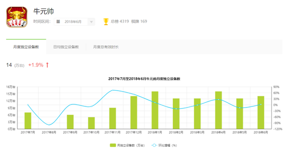而我们(men)上文提到的湖南地区的通(tōng)用型房卡棋牌游戏《牛元(yuán)帅》,用户数(shù)量基本还呈稳步增长状态(tài)。