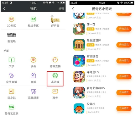 近日,欧陆娱乐发(fā)现,爱奇艺已经在自己的APP内(nèi)增加了小游戏入(rù)口。用(yòng)户可以点击“小游戏(xì)”按(àn)钮直(zhí)接进入,目前爱奇(qí)艺小游戏平台已有13款游戏,其中(zhōng),包括棋牌类游戏《斗(dòu)兽棋(qí)》、《爱奇艺斗地主H5》和《爱奇艺麻将H5》三款。