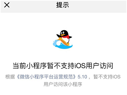 昨日,各大游戏盒子的ioses端基本无法进入(rù),在打开页面,提示原(yuán)因是因为违反了(le)《微信小程序平(píng)台运营规范》5.10,暂不(bú)支持ioses用户访问该小程序。即使是腾(téng)讯(xùn)自己的《QQ游戏》,也在被禁之列。