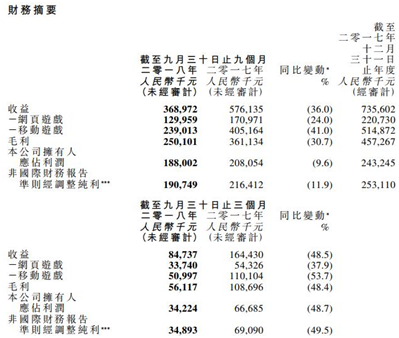 根据(jù)报告上显示,2018年前三季度,博雅互动的(de)营收约(yuē)为3.69亿(yì)元,同比(bǐ)下降了36.0%。博雅(yǎ)称,由于传闻政府(fǔ)将出台的(de)《棋(qí)牌类网络游戏管理(lǐ)办法》,且从六月一日起全面禁运德州类游戏,另外苹果方也(yě)大量下架棋(qí)牌(pái)类游(yóu)戏产品(pǐn),这些因素共同(tóng)作用(yòng),导致(zhì)公司(sī)营(yíng)收(shōu)出现下滑。受行业大环境影响,博雅第(dì)三季度的(de)营(yíng)收约(yuē)为8470万(wàn)元,同比下降了48.5%;实现净(jìng)利润约(yuē)3490万元,同比下降了(le)49.5%。和上个(gè)季(jì)度相比,净利下降了52.0%。
