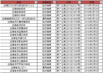 首先从游戏数量来看,受(shòu)版号问题(tí)的影响,从(cóng)2018年4月开始,就没有(yǒu)新的国产游(yóu)戏(xì)过审信息公示了(le),而在今(jīn)年(nián)的前三个月,国产网络移动(dòng)游(yóu)戏的过(guò)审量(liàng)仅为2017年(nián)的23.3%,其中,棋牌类游戏共过审872款(kuǎn)。仅在3月,边锋网络就有34款地方棋牌通过审批版号,根据今年(nián)的行业现(xiàn)状分析,边锋网络或能成为版号问题最大的受益(yì)者。