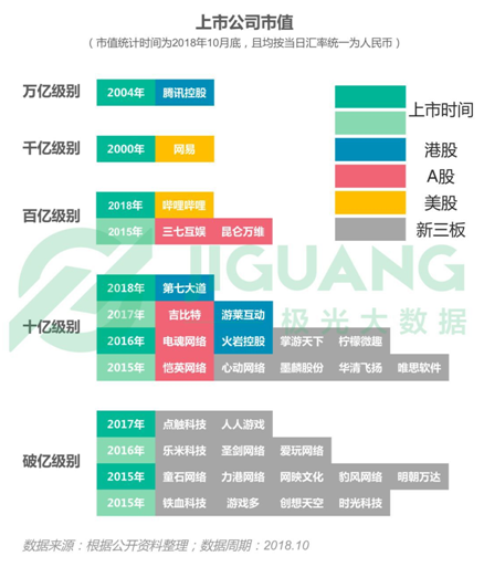 据报告中显示的上市公司情况来看(kàn),腾讯和网易依然是游戏界的(de)两座大山。不过(guò),今年腾讯旗下就(jiù)有(yǒu)《天天德州》等多款游戏退市;转型(xíng)后的闲来(lái)依(yī)然是公司营收的主(zhǔ)力军,今(jīn)年昆仑万维的市值已经进入百亿级别。主营(yíng)棋牌游戏的爱(ài)玩网络和主营捕(bǔ)鱼游戏的力港(gǎng)网络、时光科技,市值均已破亿。不过(guò),从今年各公司(sī)的(de)报告来看,只(zhī)有昆仑(lún)万维维持了营收(shōu)和净利增长的态势,受行业(yè)环境影响,大部分棋牌公司营收均出(chū)现下滑趋势。