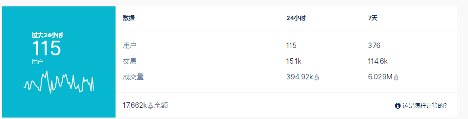 我们在之前的(de)文(wén)章说(shuō)过,这个(gè)圈子的(de)用户数虽不多,资金量(liàng)却很大。那具体有多大呢?欧陆娱乐在EOS公链上找了一款棋牌类DAPP——EOSJacks。其最(zuì)新的数据显示(shì):过去24小时的用户数量(liàng)为115人,产生(shēng)的流水为15100个EOS,以(yǐ)当前数字货币EOS的价(jià)格(gé)25块来算,也(yě)就是(shì)大(dà)概37万人民币,每个用户贡献的流水约3500元。