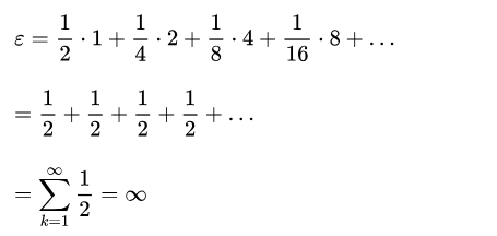 1730年代(dài),数(shù)学家丹(dān)尼尔·伯(bó)努(nǔ)利(Daniel Bernoulli)的堂兄尼古拉(lā)一世·伯(bó)努利,在致法国(guó)数(shù)学家皮耶(yē)·黑蒙·德蒙马特的信件中,提出一个问题:掷硬币,若第(dì)一次掷出正面,你就赚1元。若第一次掷出反面,那就(jiù)要再掷一次,若第二次掷的是正面(miàn),你便赚2元。若第二次掷出反面,那就要(yào)掷第(dì)三次,若第(dì)三次掷的(de)是正面,你便赚2*2元……如此类推,即可能掷一次游戏(xì)便(biàn)结束,也可能反覆掷没完没了。