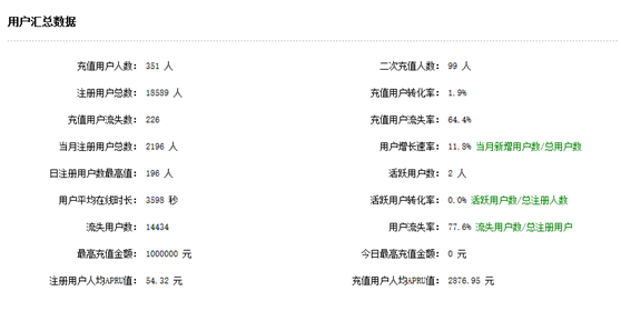 这个很好理解,上面讲过(guò)用户(hù)数(shù)的获取(qǔ),但用户吸引(yǐn)进来了,是看一(yī)看就卸掉APP呢,还是通过不(bú)断的提醒又将(jiāng)用户(hù)吸引进来呢,这都是要考虑到的情况(kuàng),所以不(bú)能单单只看用户数。用(yòng)户对手机棋牌(pái)游戏APP的内(nèi)容是否感兴趣,是否是目标用户,对哪些内容进行了点赞和(hé)评(píng)论,这些(xiē)数据和用(yòng)户习惯都可以在管理(lǐ)后(hòu)台看到。最(zuì)简(jiǎn)单的可以从用户(hù)习惯(guàn)上(shàng)看到(dào)用户的偏好,可以对此做一个简单的统计(jì),哪些内容推出来比较受用(yòng)户欢(huān)迎,哪些内容(róng)点击量又少得可怜呢,甚至(zhì)可以以此划分(fèn)成频道(dào),将用户分门别类后(hòu),将用户引入到(dào)他感兴趣的频(pín)道,能(néng)更好地提(tí)到用户的活跃(yuè)度。一(yī)般而(ér)言,在互联网上(shàng),七天是一个(gè)习惯养成的周期,如果七天都能保持点进手(shǒu)机棋牌游(yóu)戏(xì)APP的习惯,那么只要不(bú)断地培养用户的习惯,就可以使(shǐ)用户转化为忠实用户。