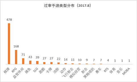 而(ér)从过审的游戏类型上来(lái)看(kàn), 棋牌游戏继续(xù)领跑。8月份(fèn)棋牌游戏产品的过审数量依(yī)旧(jiù)居(jū)高不(bú)下,达到478款(kuǎn),相较7月增长了161款。占(zhàn)所有过审游戏类型的50%。差不多是排在第二位RPG游戏的(de)3倍。而棋牌游戏的细分类型——捕鱼游(yóu)戏数量继续保(bǎo)持第四(sì)名,达到43款,相比7月上(shàng)升2款。