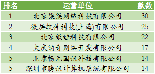 而从获得手游版号的运(yùn)营单位(wèi)榜单(dān)来看,排在首位的(de)北京柒柒网络,所过审的30款手游几乎全(quán)是(shì)棋牌(pái),其中麻将26款。排(pái)名第二位的微(wēi)屏软件,棋(qí)牌(pái)业(yè)内人(rén)士也差不多是耳熟能详了,几(jǐ)乎每次过审榜单都位(wèi)居前列。而值(zhí)得注意的是,腾讯也(yě)在今年8月再度(dù)上榜,位列第五。在过审的14款产(chǎn)品中,除《贪吃(chī)小怪物》外,其余都(dōu)是(shì)QQ棋牌,且绝大部(bù)分都是地方麻将。看(kàn)来作(zuò)为国内通用性棋牌游戏的(de)龙头,也并不想放弃地方棋牌这块肥肉,正在(zài)逐步发力。